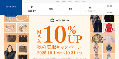 コメ兵は創業70年以上の上場企業で、ブランド買取の老舗です。貴金属の査定はプロの“目利き”鑑定士が担当し、純度・重量に基づく地金価格+ブランドやデザインの価値も見逃しません。
