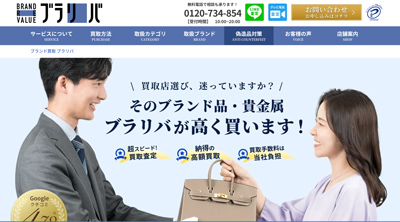 ブランドリバリュー(ブラリバ)は、ブランド品を中心に扱う大手買取サービスですが、金や貴金属の査定にも強みを持っています。利用方法は、店舗での査定だけでなく、宅配や出張といったスタイルも選べ、宅配キットや出張費、査定にかかる費用はすべて無料です。