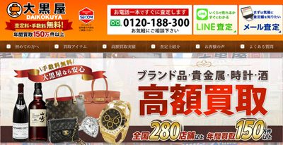 大黒屋は全国に280店舗以上を展開する大手買取チェーンで、駅近など利便性の高い立地が多く、持ち込みしやすいのが特徴です。査定は無料で、金・銀・プラチナ・宝石といった幅広い品目に対応しています。