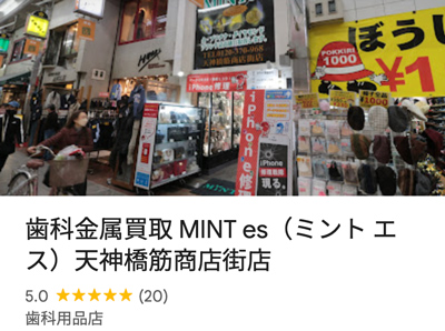 ※ミントエスは歯科金属専門の買取業者で手数料も最安値水準です。Google口コミでは高評価(★5.0)をいただいています。店舗は大阪ですが、送料無料で全国からの宅配買取に対応しています。