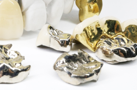 主に銀歯(被せ物・詰め物など)に用いられ、強度や耐久性、加工のしやすさに優れているのが特徴です。