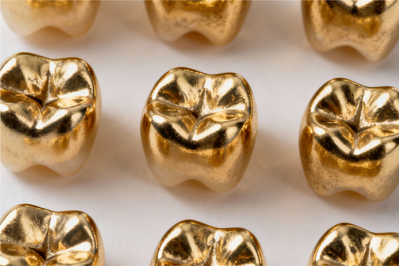 金歯とは、虫歯などの治療の際に使用される歯科用金属で、主に金を含んだ合金で作られた詰め物や被せ物を指します。
